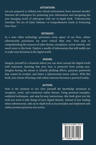 In today's digital age, the importance of safeguarding your data and online presence cannot be overstated. "Cybersecurity Unveiled: The Art of Cyber Defense" offers a comprehensive guide to navigating the complex landscape of cybersecurity with confidence. Written with clarity and accessibility in mind, this book serves as a trusted companion for individuals and businesses alike, empowering them to take proactive measures against cyber threats. From understanding the fundamentals of cybersecurity to implementing advanced defense strategies, each chapter is crafted to provide practical insights and actionable steps. Through real-world examples and case studies, readers will gain a deeper understanding of the evolving threats that lurk in the digital realm and the tools and techniques needed to thwart them. Whether you're a seasoned IT professional or someone with limited technical expertise, this book equips you with the knowledge and skills necessary to fortify your defenses and protect your valuable data. "Cybersecurity Unveiled" goes beyond mere theory; it delves into the artistry of cyber defense, emphasizing the importance of creativity and adaptability in staying one step ahead of malicious actors. With a focus on holistic security approaches and best practices, readers will learn how to create a resilient cybersecurity posture that withstands the test of time. In an era where cyber attacks are becoming increasingly sophisticated and prevalent, "Cybersecurity Unveiled" serves as an indispensable resource for anyone seeking to safeguard their digital assets and preserve their peace of mind in an interconnected world. Whether you're a concerned individual or a business leader responsible for protecting sensitive information, this book arms you with the knowledge and tools needed to navigate the digital landscape with confidence and resilience.