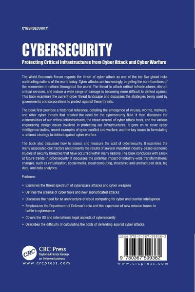 The World Economic Forum regards the threat of cyber attack as one of the top five global risks confronting nations of the world today. Cyber attacks are increasingly targeting the core functions of the economies in nations throughout the world. The threat to attack critical infrastructures, disrupt critical services, and induce a wide range of damage is becoming more difficult to defend against. Cybersecurity: Protecting Critical Infrastructures from Cyber Attack and Cyber Warfare examines the current cyber threat landscape and discusses the strategies being used by governments and corporations to protect against these threats.