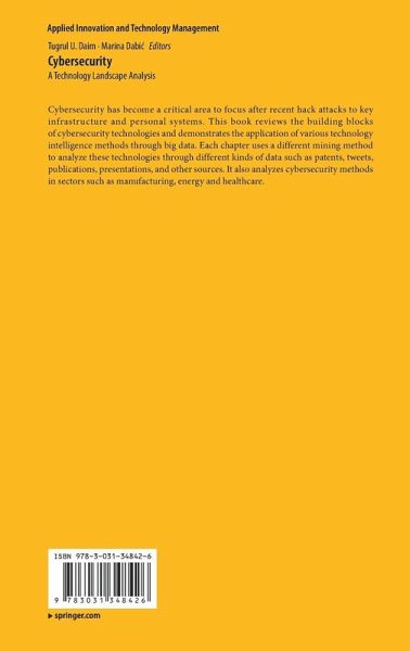 Cybersecurity has become a critical area to focus after recent hack attacks to key infrastructure and personal systems. This book reviews the building blocks of cybersecurity technologies and demonstrates the application of various technology intelligence methods through big data. Each chapter uses a different mining method to analyze these technologies through different kinds of data such as patents, tweets, publications, presentations, and other sources. It also analyzes cybersecurity methods in sectors such as manufacturing, energy and healthcare.