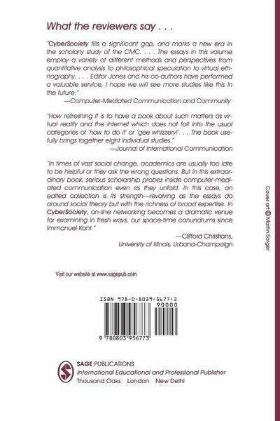 The culture of computer and network- mediated communication is growing both in size and sophistication. Cyberspace is the new frontier where new worlds, meanings and values are developed. CyberSociety focuses on the construction, maintenance and mediation of community in electronic networks and computer-mediated communication. Leading scholars representing the range of disciplines involved in the study of cyberculture lay out the definitions, boundaries and approaches to the field, as they focus on the social relations that computer-mediated communication engenders.