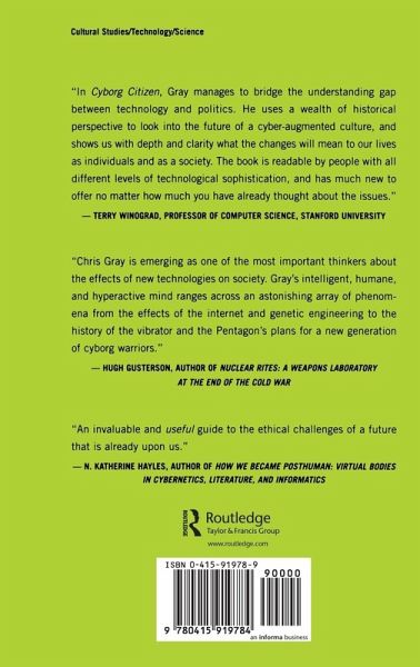 The growing synergy of humans and technology--from dialysis to genetically altered foods to PET scans--is transforming how we view our minds and our bodies. But how has it changed the body politic? How can we forge a society that protects the rights of human and cyborg alike? The creator of the cult classic Cyborg Handbook, Chris Hables Gray, now offers the first guide to "posthuman" politics, framing the key issues that could threaten or brighten our technological future. For good or ill, politics has already been cyborged in ways that touch us all: On-line voting promises to change who participates. Wars are won on video screens. Biotechnological advances-- cloning, sexual prostheses, gene patents--are redefining life, death, and family in ways that strain the social contract. In the face of these advances, visions of the cyborg future range from the utopian to the nightmarish, from a spiritual super-race transcending the body's confines to a soulless Borg consuming human individuality. Only with a broad, historically rich and ethically grounded understanding of these issues, Gray argues, can we combat the threats to our freedom and even our survival. A work of vision and imagination, Cyborg Citizen lays the groundwork for the participatory evolution of our society.
