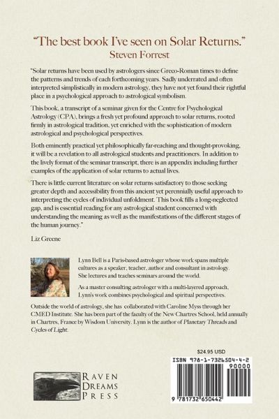 "Solar returns have been used by astrologers since Greco-Roman times to define the patterns and trends of each forthcoming years. Sadly underrated and often interpreted simplistically in modern astrology, they have not yet found their rightful place in a psychological approach to astrological symbolism. This book, a transcript of a seminar given for the Centre for Psychological Astrology (CPA), brings a fresh yet profound approach to solar returns, rooted firmly in astrological tradition, yet enriched with the sophistication of modern astrological and psychological perspectives. Both eminently practical yet philosophically far-reaching and thought-provoking, it will be a revelation to all astrological students and practitioners. In addition to the lively format of the seminar transcript, there is an appendix including further examples of the application of solar returns to actual lives. There is little current literature on solar returns satisfactory to those seeking greater depth and accessibility from this ancient yet perennially useful approach to interpreting the cycles of individual unfoldment. This book fills a long-neglected gap, and is essential reading for any astrological student concerned with understanding the meaning as well as the manifestations of the different stages of the human journey"--