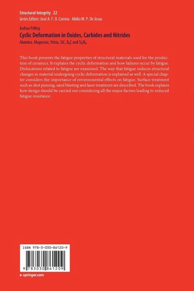 This book presents the fatigue properties of structural materials used for the production of ceramics. It explains the cyclic deformation and how failures occur by fatigue. Dislocations related to fatigue are examined. The way that fatigue induces structural changes in material undergoing cyclic deformation is explained as well. A special chapter considers the importance of environmental effects on fatigue. Surface treatment such as shot pinning, sand blasting and laser treatment are described. The book explains how design should be carried out considering all the major factors leading to reduced fatigue resistance.