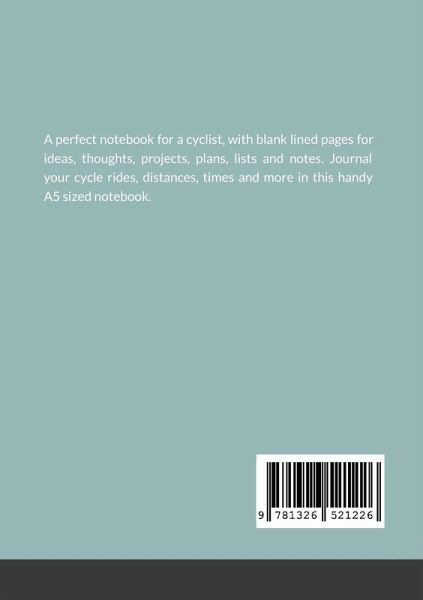 A perfect notebook for a cyclist, with blank lined pages for ideas, thoughts, projects, plans, lists and notes. Journal your cycle rides, distances, times and more in this handy A5 sized notebook.