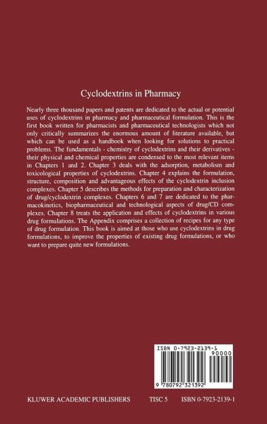 Nearly three thousand papers and patents are dedicated to the actual or potential uses of cyclodextrins in pharmacy and pharmaceutical formulations. This is the first book written for pharmacists and pharmaceutical technologists which not only critically summarizes the enormous amount of literature available, but which can be used as a handbook when looking for solutions to practical problems.