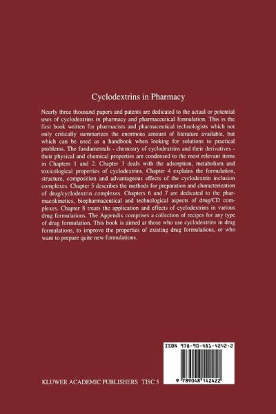 Nearly three thousand papers and patents are dedicated to the actual or potential uses of cyclodextrins in pharmacy and pharmaceutical formulations. This is the first book written for pharmacists and pharmaceutical technologists which not only critically summarizes the enormous amount of literature available, but which can be used as a handbook when looking for solutions to practical problems.