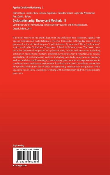 This book reports on the latest advances in the analysis of non-stationary signals, with special emphasis on cyclostationary systems. It includes cutting-edge contributions presented at the 7th Workshop on "Cyclostationary Systems and Their Applications," which was held in Gródek nad Dunajcem, Poland, in February 2014. The book covers both the theoretical properties of cyclostationary models and processes, including estimation problems for systems exhibiting cyclostationary properties, and several applications of cyclostationary systems, including case studies on gears and bearings, and methods for implementing cyclostationary processes for damage assessment in condition-based maintenance operations. It addresses the needs of students, researchers and professionals in the broad fields of engineering, mathematics and physics, with a special focus on those studying or working with nonstationary and/or cyclostationary processes.