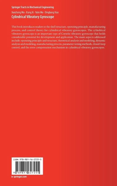 Introduction.- Operating Principle and Structure of Cylindrical Vibratory Gyroscope.- Theoretical Analysis and Modeling of Cylindrical Vibratory Gyroscope.- Dynamic Analysis and Modeling of Cylindrical Vibratory Gyroscope.- Manufacture of Cylindrical Vibratory Gyroscope.- Parameter Test Method of Cylindrical Vibratory Gyroscope.- Closed-loop Control of Cylindrical Vibratory Gyroscope.- Error Mechanism and Compensation of Cylindrical Vibratory Gyroscope.