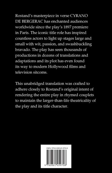 Rostand's masterpiece in verse CYRANO DE BERGERAC has enchanted audiences worldwide since the play's 1897 premiere in Paris. The iconic title role has inspired countless actors to light up stages large and small with wit, passion, and swashbuckling bravado. The play has seen thousands of productions in dozens of translations and adaptations and its plot has even found its way to modern Hollywood films and television sitcoms. This unabridged translation was crafted to adhere closely to Rostand's original intent of rendering the entire play in rhymed couplets to maintain the larger-than-life theatricality of the play and its title character.