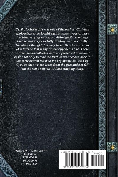 Cyril of Alexandria was one of the earliest Christian apologetics as he fought against many types of false teaching varying in degree. Although the teachings that he was very carefully refuting were not really Gnostic in thought it is easy to see the Gnostic areas of influence that many of this opponents had. These various books collected here are presented to make it easier not only to read the truth as was needed back in the early church but also the arguments set forth by Cyril so that we can learn from the past and not fall into the same schools of false teaching today.