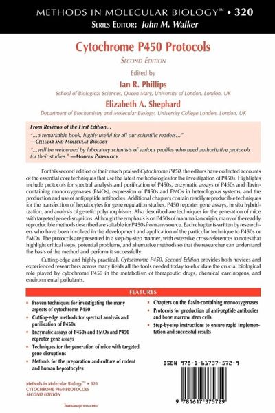 For this second edition of their much praised Cytochrome P450, the editors have collected accounts of the essential core techniques that use the latest methodologies for the investigation of P450s. Highlights include protocols for spectral analysis and purification of P450s, enzymatic assays of P450s and flavin-containing monooxygenases (FMOs), expression of P450s and FMOs in heterologous systems, and the production and use of antipeptide antibodies. Additional chapters contain readily reproducible techniques for the transfection of hepatocytes for gene regulation studies, P450 reporter gene assays, in situ hybridization, and analysis of genetic polymorphisms. Although the emphasis is on P450s of mammalian origin, many of the readily reproducible methods described are suitable for P450s from any source.