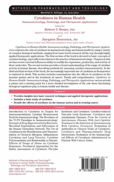 Cytokines in Human Health: Immunotoxicology, Pathology, and Therapeutic Applications explores the role of cytokines in immunotoxicology and human health using a variety of complex methods, from basic research to highly applied therapeutic applications. The first section of the book is devoted to basic concepts of cytokine biology, especially as this relates to the practice of immunotoxicology. Chapters in this section review the ability of external influences to modify the expression, production, and activity of these molecules. The second section provides a broad understanding of the range of cytokine activity in human disease, describing methods for assessing cytokine immunotoxicity. In the third and final section of the book, the increasingly important use of cytokines as therapeutics is explored in detail. This section includes examinations into the effects of cytokines on the immune system and in treating cancer. Timely and comprehensive, Cytokines in Human Health: Immunotoxicology, Pathology, and Therapeutic Applications will serve as both a primer and a starting point for a more detailed investigation of the role these fascinating biological regulators play in human health and disease.