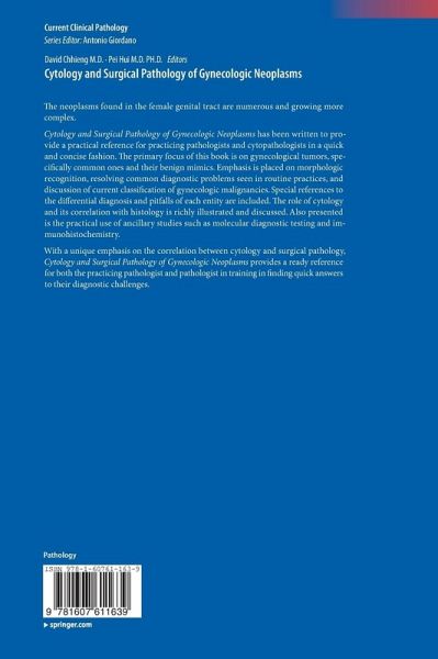 Cytology and Surgical Pathology of Gynecologic Neoplasms has been written to provide a practical reference for practicing pathologists and cytopathologists in a quick and concise fashion. The primary focus of this book is on gynecological tumors, specifically common ones and their benign mimics. Emphasis is placed on morphologic recognition, resolving common diagnostic problems seen in routine practices, and discussion of current classification of gynecologic malignancies. Special references to the differential diagnosis and pitfalls of each entity are included. The role of cytology and its correlation with histology is richly illustrated and discussed. Also presented is the practical use of ancillary studies such as molecular diagnostic testing and immunohistochemistry.