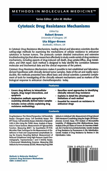 "This timely book will greatly benefit a wide array of individuals interested in cancer therapeutics, at both the clinical and basic science level. The editors and contributors did a good job of concisely presenting otherwise disparate methodologies in the context of a broad research field with the uniting purpose of understanding the biology underlying resistance to cancer chemotherapy. "-Doody's Health Sciences Book Review Journal "...the editors have managed to successfully compile a brief review of cytotoxic drug resistance mechanisms and an extensive manual of protocols for laboratory experimentation in this extremely important area of research. It is clear that any laboratory scientist in this field must be aware of the difficulty of translation to the clinic of anti-drug resistance lead compounds, and should keep a copy of this book within reach. Congratulations to the editors for assembling an important mix of laboratory and clinical scientists to create this volume."-The Quarterly Review of Biology "This book provides a comprehensive guide to a range of methods to a diverse range of drug resistance mechanisms including: Multidrug resistance (P-glycoprotein and MDR-1 gene analysis); cell sensitivity (clonogenic and MTT assays); Apoptosis (TUNEL, p 53 and Bcl-2); Glutathione-associated resistance (enzyme based glutathione assay and a HPLC method for reduced glutathione); DNA repair defects and damage (topoisomerase activity assays and DNA adduct measurements); 5-Fluorouracil metabolizing enzymes; Genetic analysis including microsatellite instability and fluorescence in situ hybridization....The methods are clearly described with each chapter consisting of an introduction and well described materials and methods sections. An extremely useful addition to most chapters was the "Notes" section where the respective authors suggest very useful hints, problem solving approaches and advice on the interpretation of results....the book is well written and useful addition to any laboratory investigating drug resistance in either clinical samples or tumor cell lines."-Cancer Forum "...a useful collection of protocols that can be used in the oncology laboratory for studies on drug resistance and molecular pharmacology....It should find its place on the library shelves of many laboratories of oncology."- Annals of Oncology