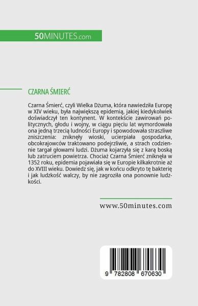 Czarna ¿mier¿, czyli Wielka D¿uma, która nawiedzi¿a Europ¿ w XIV wieku, by¿a najwi¿ksz¿ epidemi¿, jakiej kiedykolwiek do¿wiadczy¿ ten kontynent. W kontek¿cie zawirowä politycznych, g¿odu i wojny, w ci¿gu pi¿ciu lat wymordowäa ona jedn¿ trzeci¿ ludno¿ci Europy i spowodowäa straszliwe zniszczenia: znikn¿¿y wioski, ucierpiäa gospodarka, obcokrajowców traktowano podejrzliwie, a strach codziennie targä g¿owami ludzi. D¿uma kojarzy¿a si¿ z kar¿ bosk¿ lub zatruciem powietrza. Chociä Czarna ¿mier¿ znikn¿¿a w 1352 roku, epidemia pojawiäa si¿ w Europie kilkakrotnie ä do XVIII wieku. Dowiedz si¿, jak w ko¿cu odkryto t¿ bakteri¿ i jak ludzko¿¿ walczy, by nie zagrozi¿a ona ponownie ludzko¿ci.