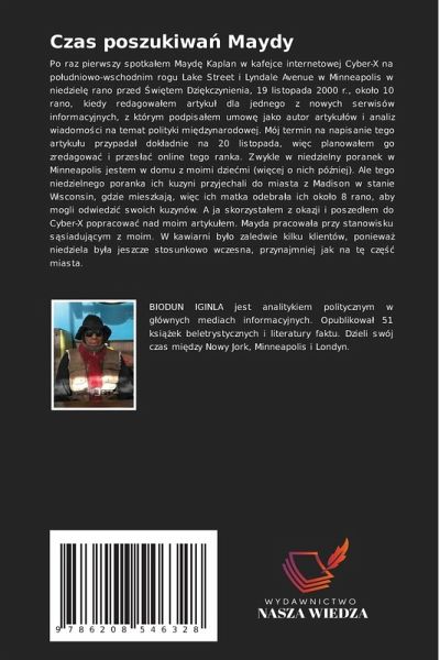 Po raz pierwszy spotkäem Mayd¿ Kaplan w kafejce internetowej Cyber-X na po¿udniowo-wschodnim rogu Lake Street i Lyndale Avenue w Minneapolis w niedziel¿ rano przed ¿wi¿tem Dzi¿kczynienia, 19 listopada 2000 r., oko¿o 10 rano, kiedy redagowäem artyku¿ dla jednego z nowych serwisów informacyjnych, z którym podpisäem umow¿ jako autor artyku¿ów i analiz wiadomo¿ci na temat polityki mi¿dzynarodowej. Mój termin na napisanie tego artyku¿u przypadä dok¿adnie na 20 listopada, wi¿c planowäem go zredagowä i przes¿ä online tego ranka. Zwykle w niedzielny poranek w Minneapolis jestem w domu z moimi dzie¿mi (wi¿cej o nich pó¿niej). Ale tego niedzielnego poranka ich kuzyni przyjechali do miasta z Madison w stanie Wisconsin, gdzie mieszkaj¿, wi¿c ich matka odebräa ich oko¿o 8 rano, aby mogli odwiedzi¿ swoich kuzynów. A ja skorzystäem z okazji i poszed¿em do Cyber-X popracowä nad moim artyku¿em. Mayda pracowäa przy stanowisku s¿siaduj¿cym z moim. W kawiarni by¿o zaledwie kilku klientów, poniewä niedziela by¿a jeszcze stosunkowo wczesna, przynajmniej jak na t¿ cz¿¿¿ miasta.