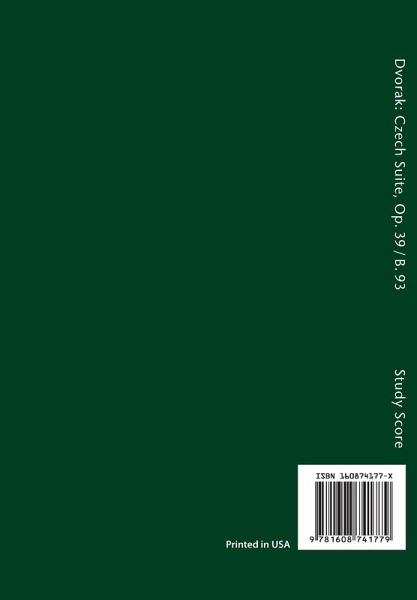 Composed rapidly during April of 1879 in the wake of his success with the two serenades (Opp.22 and 44), Dvorak this time incorporated Czech folk dances into his new work, which was to be for full orchestra. The term serenade, then more often associated with chanber or ensemble pieces (the Opp.22 and 44 were for strings and winds respectively) didn't quite fit and the new piece was designated the Czech Suite. It received its premiere ar the Provisional Theatre in Prague on May 16, 1879 with the theatre orchestra conducted by Adolf Cech, with Dvorak conducting it himself the next year to raise funds for the construction of the National Theatre.This new study score is a digitally enhanced reissue of the full score first published in 1955 by the Czech State Publishers as part of the Dvorak collected works, edited by Otakar Sourek. In contrast so many of the on-demand scores now available this one comes with all the pages with each image thoroughly checked to make sure it is readable, then beautifully printed on quality stock with an attractive glossy cover. The matching large conductor score and orchestral parts are also available from Serenissima Music.