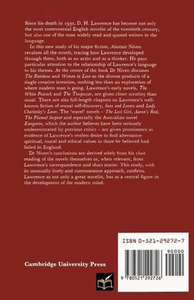 Since his death in 1930, D. H. Lawrence has become not only the most controversial English novelist of the twentieth century, but also one of the most widely read and quoted writers in the language. In this new study of his major fiction, Alastair Niven revalues all the novels, tracing how Lawrence developed through them, both as an artist and a thinker. He pays particular attention to the relationship of Lawrence's language to his themes. At the centre of the book Dr. Niven discusses "The Rainbow" and "Women in Love" as the diverse products of a single creative intention, nothing less than an exploration of where modern man is going. Lawrence's early novels, "The White Peacock" and "The Trespasser," are given closer scrutiny than usual. There are also full-length chapters on Lawrence's well-known fiction of sexual self-discovery, "Sons and Lovers" and "Lady Chatterley's Lover." The 'travel' novels--"The Lost Girl," "Aaron's Rod," "The Plumed Serpent," and especially the Australian novel "Kangaroo," which the author believes have been seriously underestimated by previous critics--are given prominence as evidence of Lawrence's restless desire to find alternative spiritual, moral, and ethical values to those he believed had failed in England. Dr. Niven's conclusions are derived solely from his close reading of the novels themselves, or, when relevant, from Lawrence's correspondences and short stories. This study, with its unusually lively and commonsense approach, confirms Lawrence as not only a great novelist, but as a central figure in the development of the modern mind.