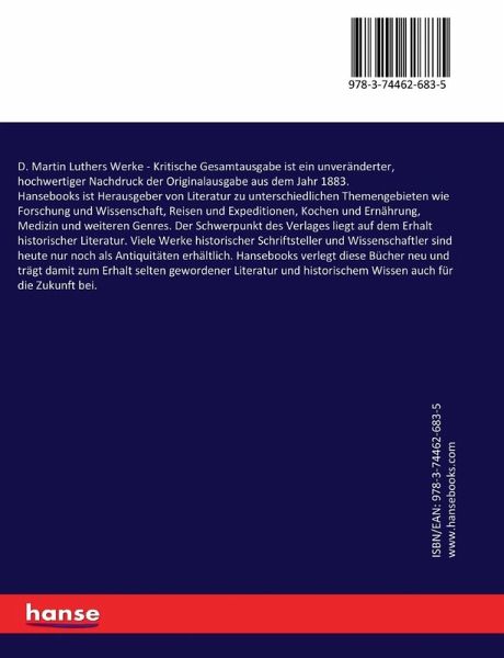 D. Martin Luthers Werke - Kritische Gesamtausgabe ist ein unveränderter, hochwertiger Nachdruck der Originalausgabe aus dem Jahr 1883.