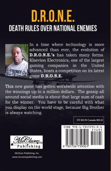 In a time where technology is more advanced than ever, the evolution of DRONE has taken many forms. Klaevion Electronics one of the largest gaming companies in the United States host a competition on its latest game DRONE. This new game has gotten worldwide attention with the winnings up to a million dollars. People all over the World, like Russia, China, Iran, Africa, Pakistan, have gotten into the Drone frenzy with over 200,000 contestants. The gossip around social media is about the large sum of cash for the winner. However, be careful with what you display on the world stage, Big Brother is always watching. Homeland Security Director Chris Mills has taken interest in this competition where all finalists are to be flown into the City of Chicago for the Regional, National and Semi-Finals. The Government is concerned about terrorists coming into the Country. The Government offers up a solution for Klaevion Electronics making an offer that cannot be refused. Hold on tight as we take flight…….DRONE!
