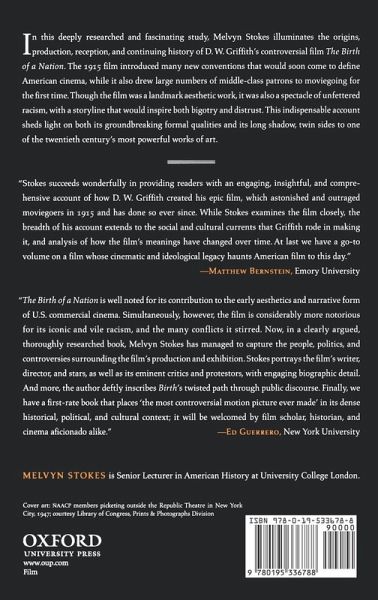 In this deeply researched and fascinating study, Melvyn Stokes illuminates the origins, production, reception, and continuing history of D. W. Griffith's controversial film The Birth of a Nation. The 1915 film introduced many new conventions that would soon come to define American cinema, while it also drew large numbers of middle-class patrons to moviegoing for the first time. Though the film was a landmark aesthetic work, it was also a spectacle of unfettered racism, with a storyline that would inspire both bigotry and distrust. This indispensable account sheds light on both its groundbreaking formal qualities and its long shadow, twin sides to one of the twentieth century's most powerful works of art.
