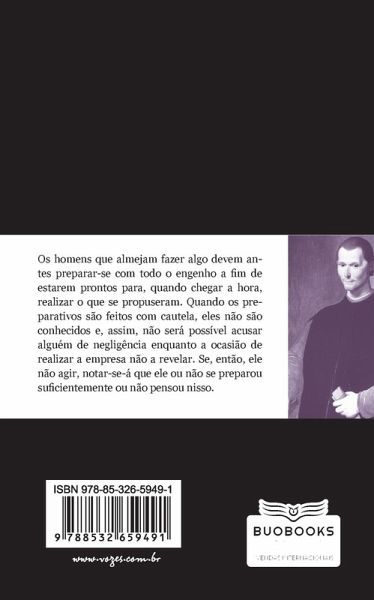 Os homens que almejam fazer algo devem antes preparar-se com todo o engenho a fim de estarem prontos para, quando chegar a hora, realizar o que se propuseram. Quando os preparativos são feitos com cautela, eles não são conhecidos e, assim, não será possível acusar alguém de negligência enquanto a ocasião de realizar a empresa não a revelar. Se, então, ele não agir, notar-se-á que ele ou não se preparou suficientemente ou não pensou nisso. Nicolau Maquiavel é conhecido como fundador da ciência política, foi também historiador, poeta, diplomata e músico. Teve intensa carreira política na República Florentina antes do governo de Lourenço Médici, a quem dedicou sua principal obra, O Príncipe.