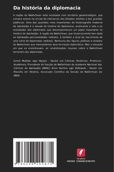 A região de Nakhchivan está localizada num território geoestratégico, que sempre esteve no círculo de interesses dos Estados vizinhos e das grandes potências. Uma das questões mais importantes da historiografia moderna do Azerbaijão é o estudo da história da diplomacia, analisando a vida e as actividades dos diplomatas que desempenharam um papel importante na história do Azerbaijão. A região de Nakhchivan, que historicamente tem dado ao Azerbaijão personalidades notáveis, é também o local de nascimento de uma série de diplomatas notáveis. Nenhuma das figuras políticas e estatais do Nakhchivan que mencionámos teve formação diplomática. Mas a situação em que se encontravam, as reivindicações injustas sobre o Nakhchivan tornaram-nos diplomatas.