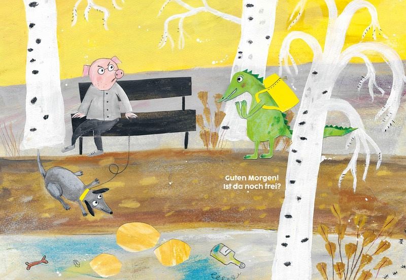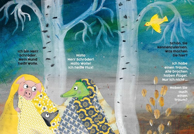 »Guten Morgen! Ist da noch frei?«, fragt Drache Flux den miesepetrigen Herrn Schröder. Und so beginnt eine zaghafte Annäherung, bei der Herr Schröder lernt, dass es nie zu spät ist, seine Träume Wirklichkeit werden zu lassen. Ein Buch, das mit wenigen Worten auskommt, und dabei eine wunderschöne Botschaft vermittelt.
