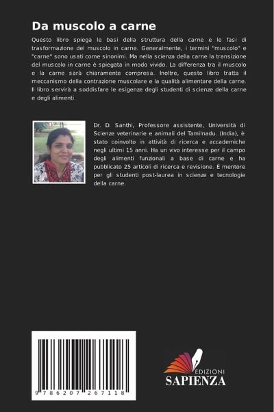 Questo libro spiega le basi della struttura della carne e le fasi di trasformazione del muscolo in carne. Generalmente, i termini "muscolo" e "carne" sono usati come sinonimi. Ma nella scienza della carne la transizione del muscolo in carne è spiegata in modo vivido. La differenza tra il muscolo e la carne sarà chiaramente compresa. Inoltre, questo libro tratta il meccanismo della contrazione muscolare e la qualità alimentare della carne. Il libro servirà a soddisfare le esigenze degli studenti di scienze della carne e degli alimenti.