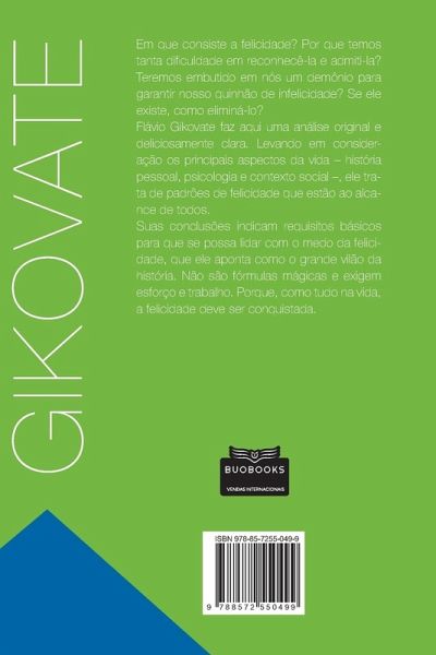 Gikovate retoma o tema da felicidade com novo vigor e sabedoria. É um livro claro e bem conduzido em que ele aponta os tipos de felicidade, suas armadilhas, as bases para as alegrias da vida que levam ao bem-estar. Sua originalidade é completada com a uma análise sobre o grande vilão, o medo da felicidade.