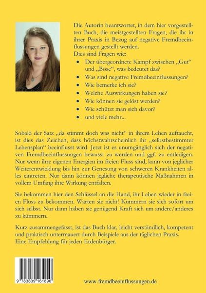 Sobald der Satz "da stimmt doch was nicht" auftaucht, ist dies immer das erste Anzeichen dafür, dass man es höchstwahrscheinlich mit negativen Fremdbeeinflussungen zu tun hat. Hier wird ein umfassender Einblick über negative Fremdbeeinflussungen vermittelt. Es werden unter anderem die Themen wie "Erkennen - Feststellen - Auswirkung - Lösung - Schutz" nahegebracht. Beispiele aus der täglichen Praxis, untermaueren dies und machen das Thema greifbar für jeden. Durch seine Klarheit, die kompetenten Ausführungen und der leicht verständliche Stil ist es ein Vergnügen dieses Buch zu lesen.