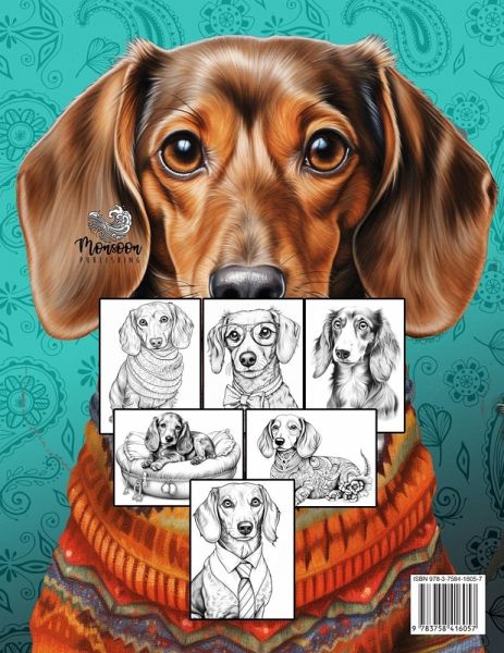 Dackel Graustufen und Zentangle Malbuch für ErwachseneEin lustiges Dackel Malbuch in Graustufen und in Zentangle Stil für abwechslungsreiche Malvorlagen. Das Malbuch beinhaltet60 S.A4schwarze Rückseiten (kein durchdrücken, optimal zum aufhängen)Dackel auf SofasDackel im GartenDackel mit Regencapes und PulloverDackel mit Brille und KrawatteDackel mit WelpenDackel in GraustufenDackel in Zentangleuvm. Das Graustufen Malbuch ist ein tolles Geschenk für alle Dackel Besitzer und Hunde Liebhaber