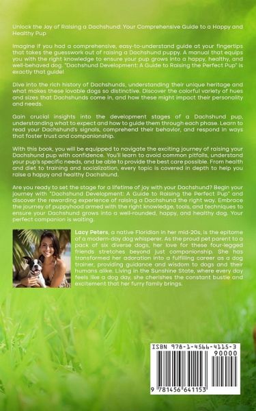 Unlock the Joy of Raising a Dachshund: Your Comprehensive Guide to a Happy and Healthy Pup Imagine if you had a comprehensive, easy-to-understand guide at your fingertips that takes the guesswork out of raising a Dachshund puppy. A manual that equips you with the right knowledge to ensure your pup grows into a happy, healthy, and well-behaved dog. "Dachshund Development: A Guide to Raising the Perfect Pup" is exactly that guide! Dive into the rich history of Dachshunds, understanding their unique heritage and what makes these lovable dogs so distinctive. Discover the colorful variety of hues and sizes that Dachshunds come in, and how these might impact their personality and needs. Gain crucial insights into the development stages of a Dachshund pup, understanding what to expect and how to guide them through each phase. Learn to read your Dachshund's signals, comprehend their behavior, and respond in ways that foster trust and companionship. With this book, you will be equipped to navigate the exciting journey of raising your Dachshund pup with confidence. You'll learn to avoid common pitfalls, understand your pup's specific needs, and be able to provide the best care possible. From health and diet to training and socialization, every topic is covered in depth to help you raise a happy and healthy Dachshund. Are you ready to set the stage for a lifetime of joy with your Dachshund? Begin your journey with "Dachshund Development: A Guide to Raising the Perfect Pup" and discover the rewarding experience of raising a Dachshund the right way. Embrace the journey of puppyhood armed with the right knowledge, tools, and techniques to ensure your Dachshund grows into a well-rounded, happy, and healthy dog. Your perfect companion is waiting.