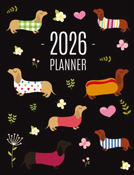 Dachshund Planner 2026   Schedule Each Appointment and Stay Organized in 2026! Would you like to: - See your schedule at a glance? - Have a clear overview of your to-do list? Then look no further...This beautiful Daily Planner 2026 lets you keep track of everything you care about.Get This 2026 Monthly Planner and Start Organizing Your Life This stylish agenda scheduler will make things easy. Take back control of your time, to do what really matters.This is What You Can Use This Planner For: - Keep track of appointments - Birthdays of loved ones - Meetings at the office - Family events - Medical visits - Holidays Basically, anything you want to plan!What Will You Get If You Buy This 2026 Year Planner? - 2026 Calendar: January - December - Monthly calendar spread (2 pages!), giving you a birds-eye view of each month - For every day, space to write down your goals, tasks, and appointments - Large size: lots of space to write + quick overview of your schedule - Perfect bound and printed on high-quality durable paper- Soft, premium cover So, would you like to be on top of things in 2026?Then don't wait any longer and click the 'Buy' button to get this 2026 planner.