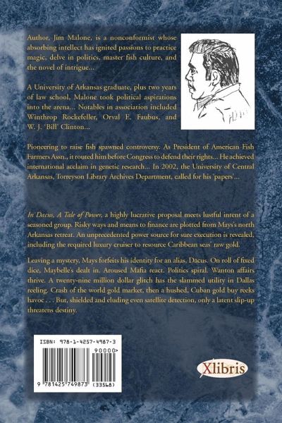 DACUS, A TALE OF POWER Prospects of Mays' venture revive lustful passions of the invited few at his northern Arkansas retreat. The proposal accepted, he recoups his alias, Dacus, and demonstrates the power cloaked strategy to ultimately resource raw gold from the Caribbean seas. To fund operations, an intricate and risky means is employed. Their gaming hit incites rampant unpredictables. Around the slammed conglomerate, scandalous affairs and shams erupt.Politicians vie.Vested entities and the gold cartel, invaded, try to avenge. After a latent slip-up occurs on the luxury cruiser, Dacus blocks adversaries again and eludes even satellite detection. But destiny is threate