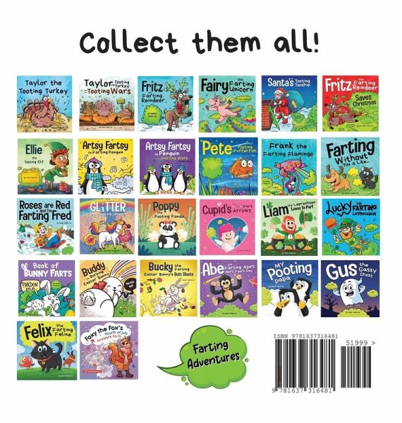 From the Farting Adventures series by Humor Heals Us comes a new dynamic book about Fathers... Dad rides so fast along the road, My tummy gets all jiggly. And when we hit a bump I pop off Which makes us both so giggly! The book series, Farting Adventures, celebrates the value of laughter. The Farting Adventures book series is geared to kids and adults ages 0-100: ¿ Taylor the Tooting Turkey ¿ Frank the Farting Flamingo ¿ Artsy Fartsy the Farting Penguin ¿ Fairy the Farting Unicorn ¿ Buddy the Burping Bunny ¿ Roses are Red, And I'm Farting Fred ¿ Lucky the Farting Leprechaun ¿ Book of Bunny Farts ¿ Pete the Pooting Pufferfish ¿ Fritz the Farting Reindeer Collect them all!