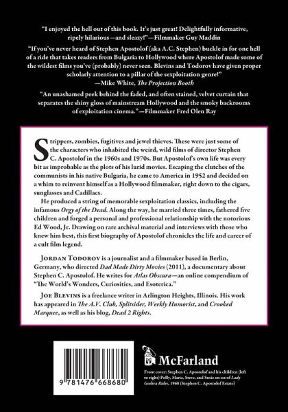 Strippers, zombies, fugitives and jewel thieves. These were just some of the characters who inhabited the weird, wild films of director Stephen C. Apostolof in the 1960s and 1970s. But Apostolof's own life was every bit as improbable as the plots of his lurid movies. Escaping the clutches of the communists in his native Bulgaria, he came to America in 1952 and decided on a whim to reinvent himself as a Hollywood filmmaker, right down to the cigars, sunglasses and Cadillacs. He produced a string of memorable sexploitation classics, including the infamous Orgy of the Dead. Along the way, he married three times, fathered five children and forged a personal and professional relationship with the notorious Ed Wood, Jr. Drawing on rare archival material and interviews with those who knew him best, this first biography of Apostolof chronicles the life and career of a cult film legend.