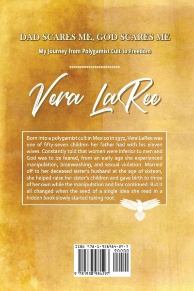 Born into a polygamist cult in Mexico in 1971, Vera LaRee was one of fifty-seven children her father had with his eleven wives. Constantly told that women were inferior to men and God was to be feared, from an early age she experienced manipulation, brainwashing and sexual violation. Married off to her deceased sister’s husband at the age of sixteen, she helped raise her sister’s children and gave birth to three of her own—truly believing what she had always been told: That a woman could not get to Heaven without a man. But hard as she tried to live "celestial marriage," to please her husband and make peace with her life, she never felt loved, respected or valued. However, every time she silently (and secretly) dared to question the beliefs of the cult, she found herself overcome with guilt, shame, and fear. So, for years, the control that her father, husband, and their polygamist God had over her continued—but it all began to change when the seed of a single idea she read in a hidden book slowly started taking root. THE TRUE STORY OF ONE WOMAN’S QUEST FOR FREEDOM, THIS IS A BOOK YOU WILL NEVER FORGET!