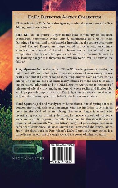 All three books in 'DaDa Detective Agency', a series of mystery novels by Pete Adams, now in one volume! Road Kill: In the genteel, upper middle-class community of Southsea, Portsmouth, cataclysmic events unfold, culminating in a violent clash featuring a Sherman tank and a bazooka. Investigating the strange occurrence is Lord Everard Pimple, an inexperienced aristocrat who unwittingly stumbles into a world of feminine charms and a host of unforeseen complications. As Everard's life spins out of control, he remains oblivious to the looming danger that threatens to level his world. Will he survive the fallout? Rite Judgement: In the aftermath of Sister Winfrede's gruesome murder, the police and MI5 are called in to investigate a string of increasingly bizarre deaths that hint at a connection to something sinister. Even as more bodies pile up, one victim, Bea Flat, inexplicably returns from the dead to conduct the orchestra. Jack Austin and the DaDa Detective Agency are at the center of this surreal tale of crime, myth, and legend, where reality and illusion blur and hope prevails despite the chaos. Rite Judgement is a story of good versus evil, and the human capacity for belief in the face of uncertainty. Blood Sport: As Jack and Mandy return home from a Rite of Spring dance in London, they speak with Jack's son, Angie, who, like his father, is considered inept in the field of crime-solving. But when Angie is tasked with investigating council planning decisions, he uncovers a web of corporate greed and a sinister organization called Hegemon that threatens the coastal resources of Portsmouth. With his father's analytical genes, Angie becomes a defender of democracy, taking on surreal and unexpected challenges. 'Blood Sport', the third book in Pete Adams's DaDa Detective Agency series, is a comedic yet serious tale of conspiracy and the power of inherited traits.