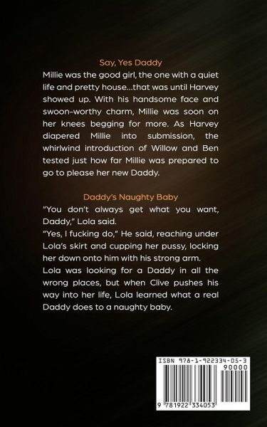 Two romantic DDLG and ABDL themed love stories for the age play fetishist. Please note: These stories contain heavy sexually explicit content, Age Play, DDLG, MDLG and ABDL themes. It features diaper changes (wet), lactation, Dominants and a submissive. The characters in this book are consenting adults engaged in a variety of kinky, fun activities and this novel is intended for adult readers only. Daddy's Naughty Gangster Don't you dare touch your sluty little cunt baby girl, that's Daddy's now, and I'll tell you when you can touch it. Tonight, pretty baby, tonight you'll show Daddy your pussy. Your Daddy demands it; Mason wrote. Mason had been teasing Lucy for hours, but little did he know that she was about to switch up the game forever… I Love You, Daddy Nadia looked up at the stars and wondered what it would take to feel again. To be able to feel love, to be able to be touched without flinching and to be able to smile without the threat of the tears she kept just behind her eyes from escaping. Dan was looking up at those very same stars on the very same night, yet his question was simpler, how do I make my life more interesting? Follow the story of Nadia and Dan as they ride the highs and lows together, proving that there is nothing love can't cure. If you are looking for a loving DDLG story… Then scroll up and click "add to cart"