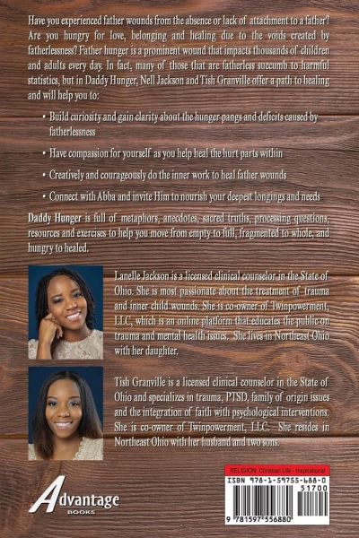 Have you experienced father wounds from the absence or lack of attachment to a father? Are you hungry for love, belonging and healing due to the voids created by fatherlessness? Father hunger is a prominent wound that impacts thousands of children and adults every day. In fact, many of those that are fatherless succumb to harmful statistics, but in Daddy Hunger, Nell Jackson and Tish Granville offer a path to healing and will help you to: · Build curiosity and gain clarity about the hunger pangs and deficits caused by fatherlessness · Have compassion for yourself as you help heal the hurt parts within · Creatively and courageously do the inner work to heal father wounds · Connect with Abba and invite Him to nourish your deepest longings and needs Daddy Hunger is full of metaphors, anecdotes, sacred truths, processing questions, resources and exercises to help you move from empty to full, fragmented to whole, and hungry to healed. Health and Fitness - Mental Health - Anxiety Parenting & Relationships - Fatherhood Social Sciences: Psychology - Developmental Psychology Jungian Psychology RELIGION: Family & Relationships - Parenting - Fatherhood