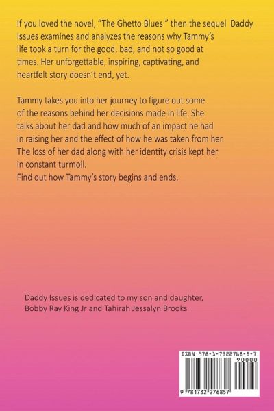If you loved the novel, "The Ghetto Blues" then the sequel Daddy Issues examines and analyzes the reasons why Tammy's life took a turn for the good, the bad, and the not so good at times. Her unforgettable, inspiring, captivating, and heartfelt story doesn't end, yet. Tammy takes you into her journey to figure out some of the reasons behind her decisions made in life. She talks about her dad and how much of an impact he had in raising her and the effect of how he was taken from her. The loss of her dad along with her identity crisis kept her in constant turmoil. Find out how Tammy's story begins and ends.