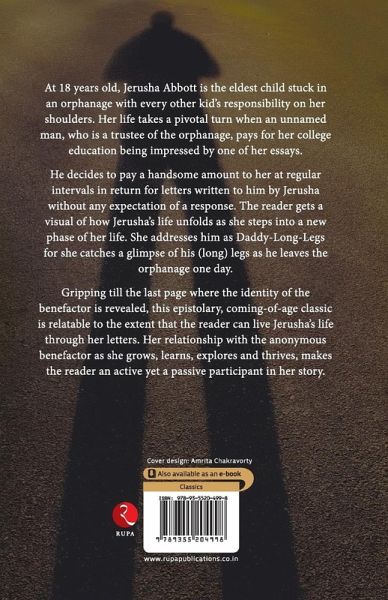 At 18 years old, Jerusha Abbott is the eldest child stuck in an orphanage with every other kid's responsibility on her shoulders. Her life takes a pivotal turn when an unnamed man, who is a trustee of the orphanage, pays for her college education being impressed by one of her essays. He decides to pay a handsome amount to her at regular intervals in return for letters written to him by Jerusha without any expectation of a response. The reader gets a visual of how Jerusha's life unfolds as she steps into a new phase of her life. She addresses him as daddy long legs for she catches a glimpse of his (long) legs as he leaves the orphanage one day. Gripping till the last page where the identity of the benefactor is revealed, this epistolary comingof- age classic is relatable to the extent that the reader can live Jerusha's life through her letters. Her relationship with the anonymous benefactor as she grows, learns, explores and thrives, makes the reader an active yet a passive participant in her story.