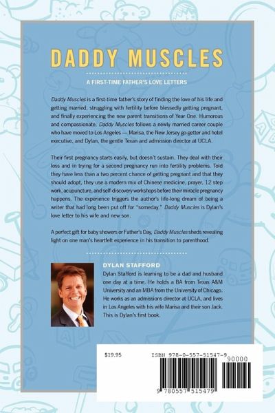 Daddy Muscles is a first-time father's story of finding the love of his life, getting married, struggling with fertility, blessedly getting pregnant, and finally experiencing the new parent transitions of Year One. This is Dylan's first book. He is learning to be a dad and husband one day at a time. He holds a BA from Texas A&M University and an MBA from the University of Chicago. He works as an admissions director at the UCLA Anderson School of Management, and lives in Los Angeles with his wife Marisa and their son Jack.