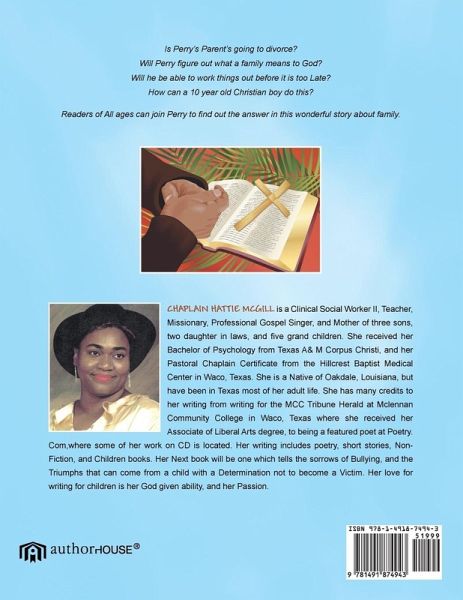 Is Perry's Parent's going to divorce? Will Perry figure out what a family means to God? Will he be able to work things out before it is too Late? How can a 10 year old Christian boy do this? Readers of All ages can join Perry to find out the answer in this wonderful story about family.