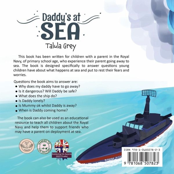 Daddy's at Sea is a heartfelt and engaging story that helps children understand what it means to have a parent serving at sea. Designed for young readers, this beautifully illustrated book answers common questions kids may have about their daddy's important role in the Royal Navy, such as: * Why does Daddy have to go to sea? * Is it dangerous? Will Daddy be safe? * What does Daddy do on his missions? * Is Daddy lonely while he's away? * How will our family manage while Daddy is gone? * When will Daddy come home? Through relatable storytelling and vivid illustrations, this book highlights the bravery of sailors and the sacrifices their families make. It provides comfort and reassurance to children while celebrating the vital work of the Royal Navy, from humanitarian missions to keeping trade routes safe and fostering peace worldwide. Perfect for: * Royal Navy families navigating deployments * Schools teaching about the armed forces and military life * Encouraging empathy and understanding among friends and classmates Whether you're part of a Navy family or simply curious about the life of sailors and their loved ones, Daddy's at Sea is a touching tribute to the courage of military families.
