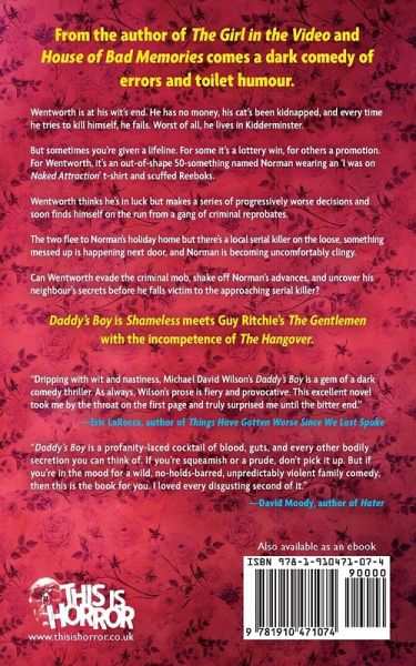 From the author of The Girl in the Video and House of Bad Memories comes a dark comedy of errors and toilet humour. Wentworth is at his wit's end. He has no money, his cat's been kidnapped, and every time he tries to kill himself, he fails. Worst of all, he lives in Kidderminster. But sometimes you're given a lifeline. For some it's a lottery win, for others a promotion. For Wentworth, it's an out-of-shape 50-something named Norman wearing an 'I was on Naked Attraction' t-shirt and scuffed Reeboks. Wentworth thinks he's in luck but makes a series of progressively worse decisions and soon finds himself on the run from a gang of criminal reprobates. The two flee to Norman's holiday home but there's a local serial killer on the loose, something messed up is happening next door, and Norman is becoming uncomfortably clingy. Can Wentworth evade the criminal mob, shake off Norman's advances, and uncover his neighbour's secrets before he falls victim to the approaching serial killer? Daddy's Boy is Shameless meets Guy Ritchie's The Gentlemen with the incompetence of The Hangover.