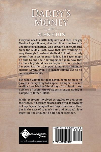 Everyone needs a little help now and then. For gay Muslim Sayen Homet, that help first came from his understanding mother, who brought him to America from the Middle East. Now that he's working his way through Stanford Medical School, his help comes from a secret sugar daddy. But Sayen might be able to end their arrangement soon now that he has a boyfriend he can depend on, A student Campbell Reardon. Campbell is more than willing to support Sayen, even if it means coming out to his conservative family. But when Campbell takes Sayen home to meet his parents, everything falls apart. Campbell doesn't realize how his boyfriend pays for school... and neither of them knows Sayen's sugar daddy is Campbell's father, Blake. While everyone involved struggles to overcome their shock, it becomes obvious Blake will do anything to keep Sayen. Campbell and Sayen love each other, but in the face of so much hurt and betrayal, love might not be enough to hold them together.