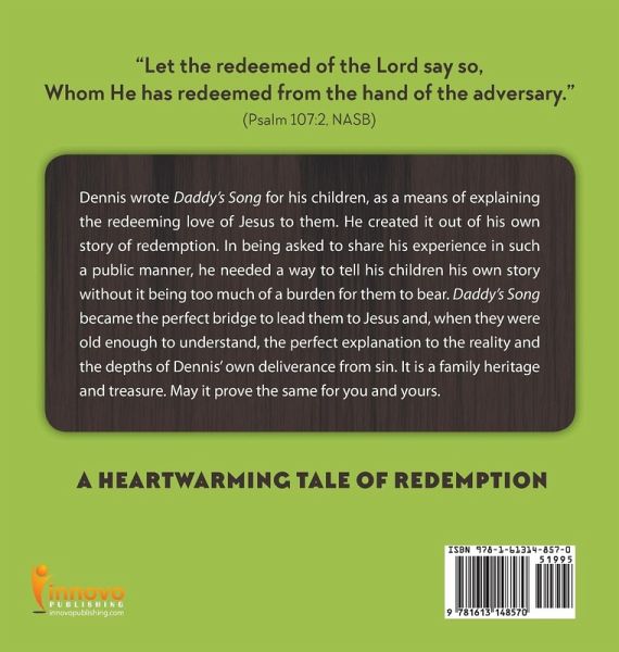 ABOUT THE BOOK: Dennis wrote Daddy's Song for his children, as a means of explaining the redeeming love of Jesus to them. He created it out of his own story of redemption. In being asked to share his experience in such a public manner, he needed a way to tell his children his own story without it being too much of a burden for them to bear. Daddy's Song became the perfect bridge to lead them to Jesus and, when they were old enough to understand, the perfect explanation to the reality and the depths of Dennis' own deliverance from sin. It is a family heritage and treasure. May it prove the same…mehr