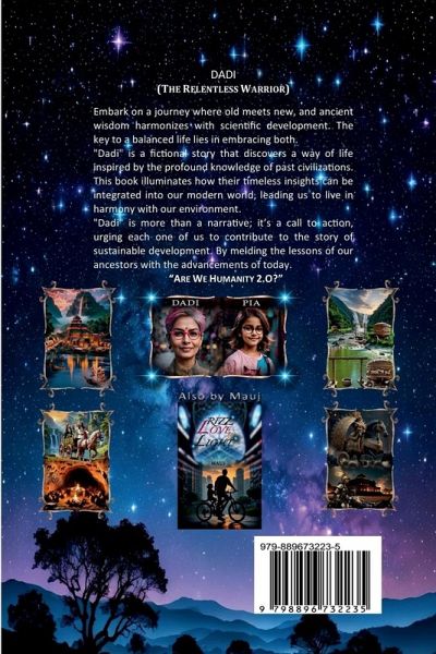 DADI (The Relentless Warrior) Embark on a journey where old meets new, and ancient wisdom harmonizes with scientific development. The key to a balanced life lies in embracing both. "Dadi" is a fictional story that discovers a way of life inspired by the profound knowledge of past civilizations. This book illuminates how their timeless insights can be integrated into our modern world, leading us to live in harmony with our environment. "Dadi" is more than a narrative; it's a call to action, urging each one of us to contribute to the story of sustainable development. By melding the lessons of our ancestors with the advancements of today. "Are We Humanity 2.O?"